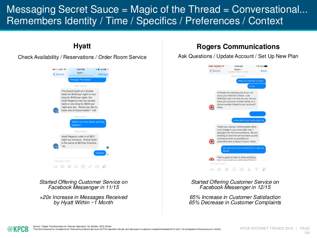 […] friends. When Hyatt started using Facebook Messenger for customer service last year, they saw a 20x increase in FB messages within a month. Customers were ready and willing to communicate, they just needed […]