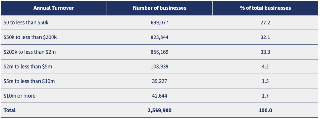 In Australia, the definition of an SME (or small-medium enterprise) is: 1-200 employees.