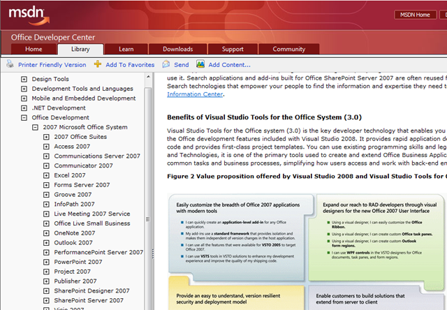 | MSDN Office Developer Centre Article This excellent article, whilst long, covers the components of OBA quite thoroughly, and also outlines the reasons for choosing VSTO V3 for your OBA development (even if the ‘value proposition’ diagram still refers to V2). Dives into VBA considerations and deployment also. Highly recommended. |