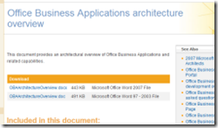 Office Business Applications architecture overview A good overview document (Word download) covering the architectural approach applicable to building OBAs |