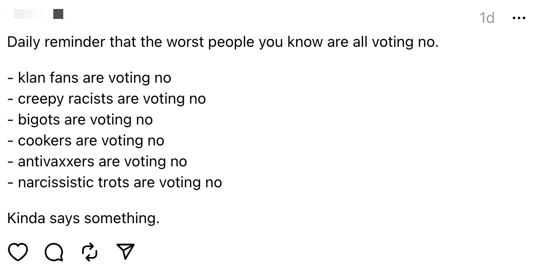 But to then suggest they’re in league with klan fans and creepy racists if they’re voting No.