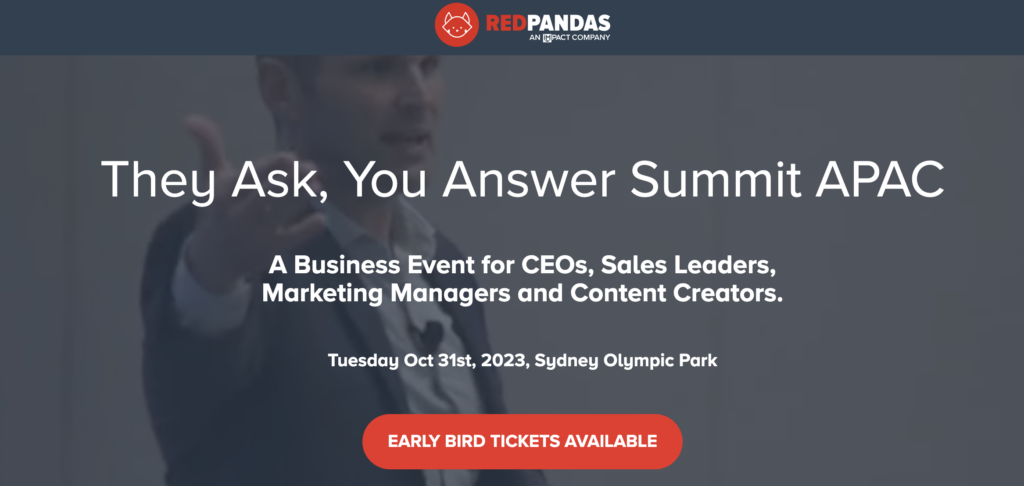 My friends Moby, Tasha and Linda at Red Pandas are hosting the They Ask, You Answer Summit in Australia on 31 October 2023.