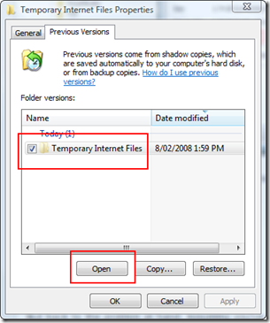To get access to the folders, go to the Previous Versions tab (on the Properties form above).