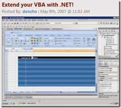 If you’re after a fuller article on VSTO and VBA then this ‘ancient’ one from Paul Stubbs and Kathleen McGrath is highly recommended. Incidentally, their book VSTO for Mere Mortals was the first book I read on VSTO, and was an excellent introduction (note: it’s based on a previous version of VSTO).